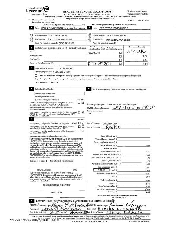 | Mailing Address: | 33602 SE 348TH ST ENUMCLAW, WA 98022-7622 | % Ownership: | 100.0000000000% |