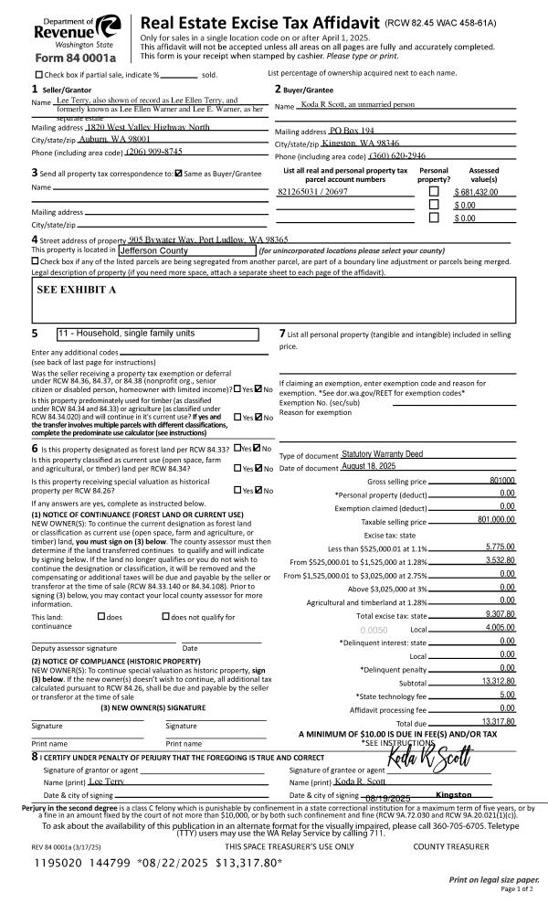| 1 | 03/29/2004 | SWD | Statutory Warranty Deed | MESSER, STANLEY T/KRISTYN | MEYERS, BRIAN M/KAREN S | 0 | 0 | $22,000.00 | 99912 | 0 |