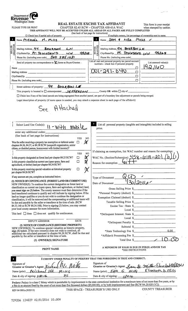 | Mailing Address: | 1051 QUINCY ST PORT TOWNSEND, WA 98368-5414 | % Ownership: | 100.0000000000% |