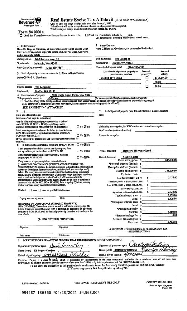 | 1 | 04/14/2021 | SWD | Statutory Warranty Deed | CLYDE HENRY SCHECHERT | CHRISTINE M FOUNTAIN & ADAM H MCDALD | | | $37,500.00 | 136544 | |