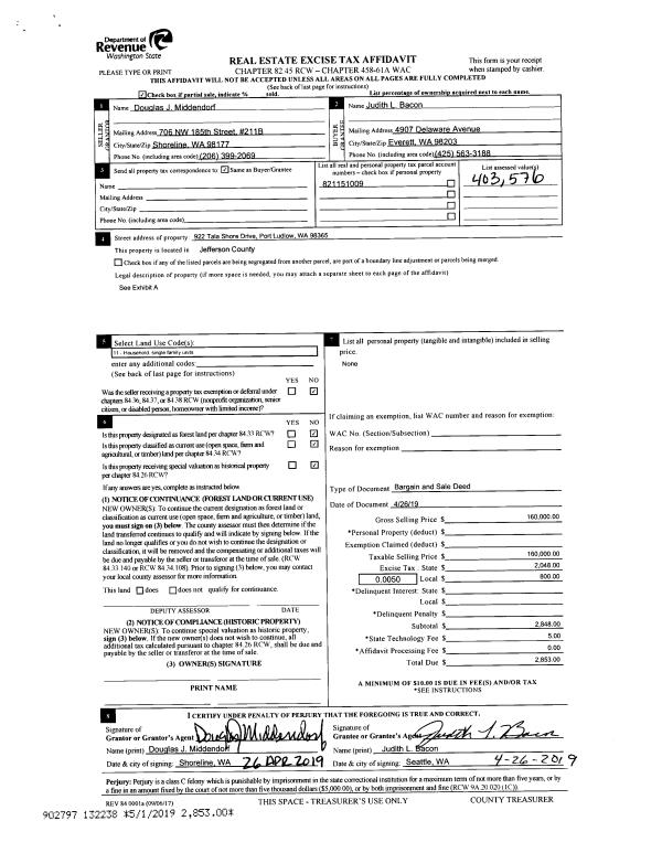 | Mailing Address: | 2300 RAINIER ST PORT TOWNSEND, WA 98368 | % Ownership: | 100.0000000000% |