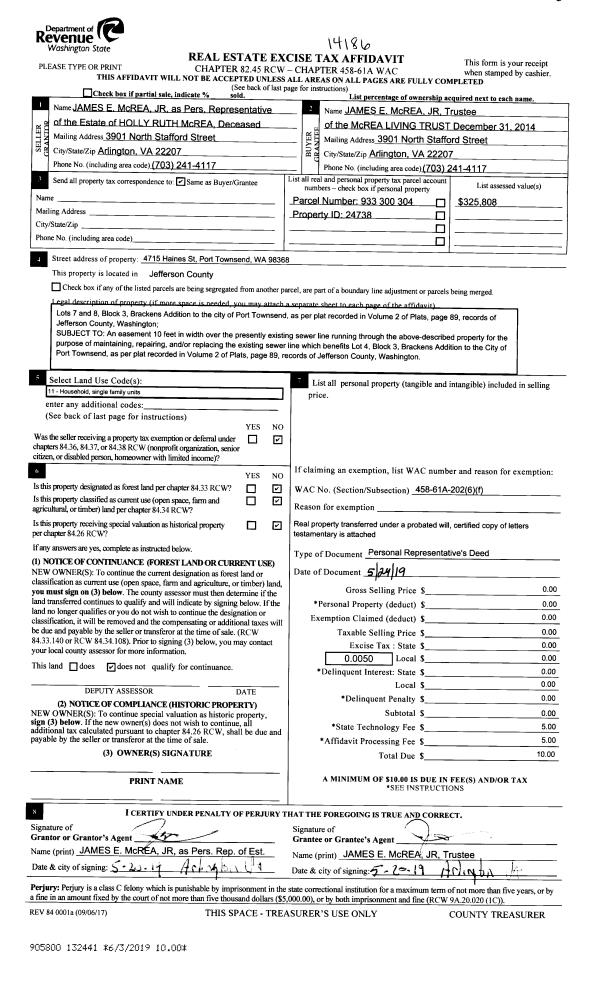 | Mailing Address: | 2292 RAINIER ST PORT TOWNSEND, WA 98368-5910 | % Ownership: | 100.0000000000% |