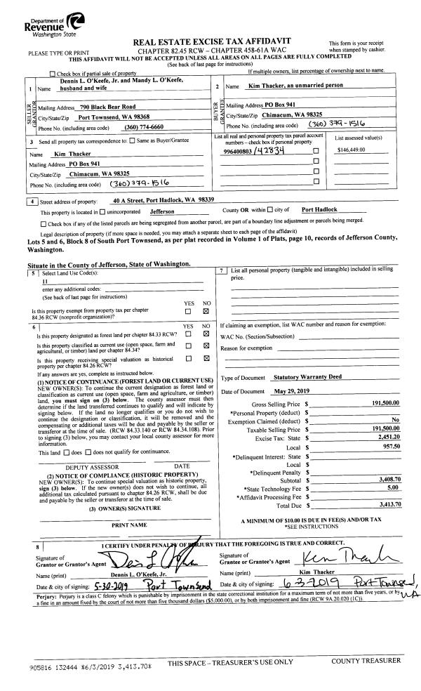 | Mailing Address: | 2234 RAINIER ST PORT TOWNSEND, WA 98368 | % Ownership: | 100.0000000000% |