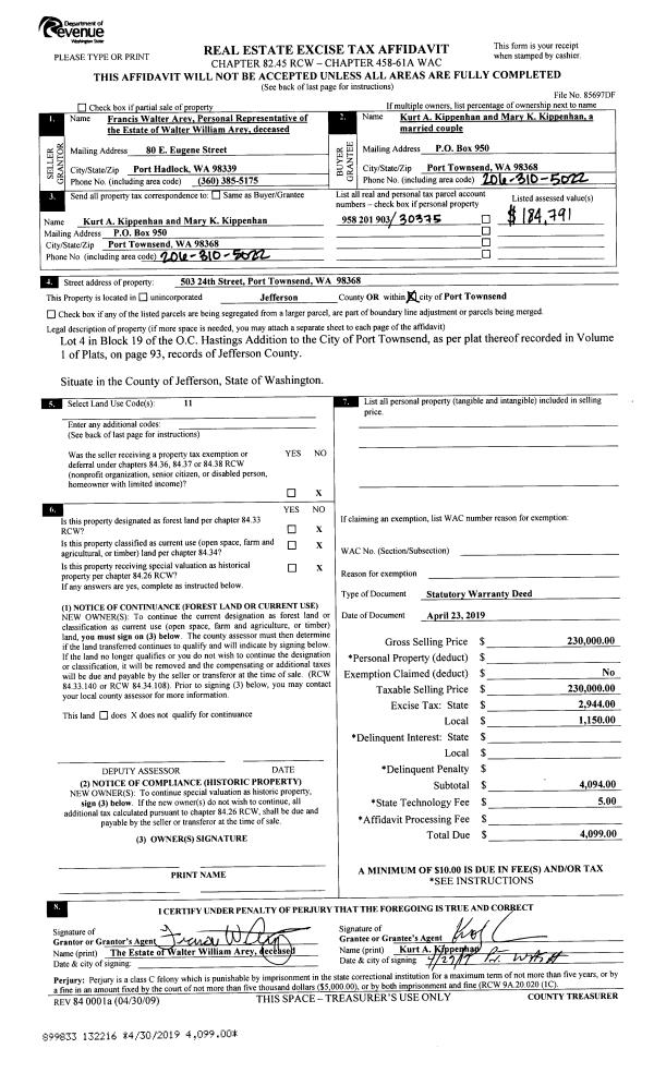 | 2 | 06/10/2005 | SWD | Statutory Warranty Deed | MERCHANT, JEFFREY | VAN BUREN, BRUCE C/EVA J | | | $198,000.00 | 103840 | 0 |