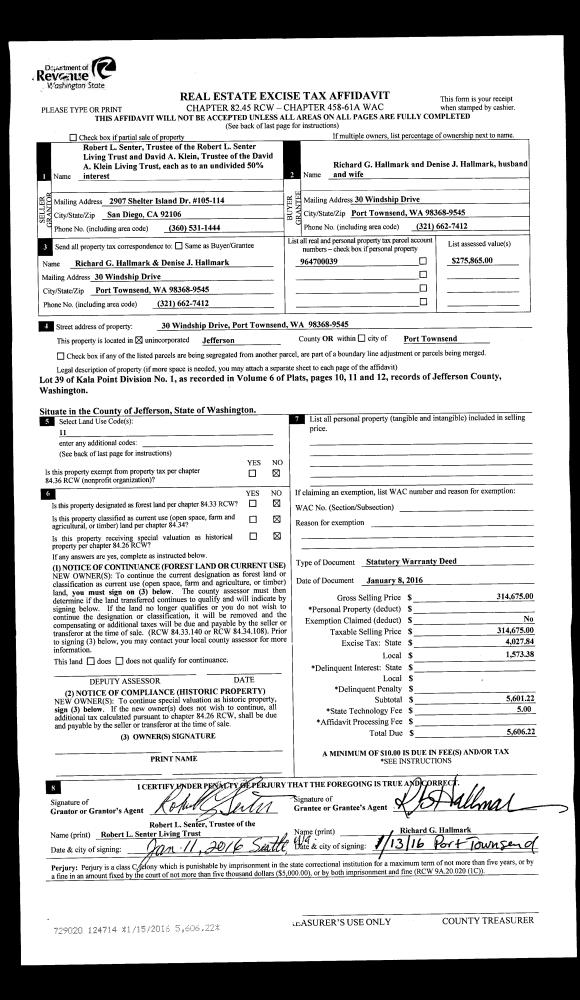 | Mailing Address: | 2257 HIGHLAND LOOP PORT TOWNSEND, WA 98368-5931 | % Ownership: | 100.0000000000% |