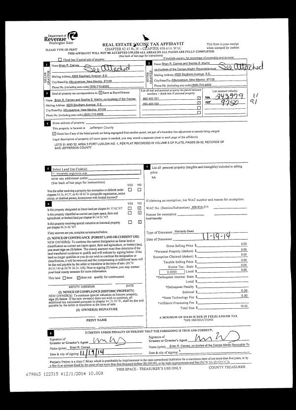 | Mailing Address: | 2587 HIGHLAND LOOP PORT TOWNSEND, WA 98368-5932 | % Ownership: | 100.0000000000% |