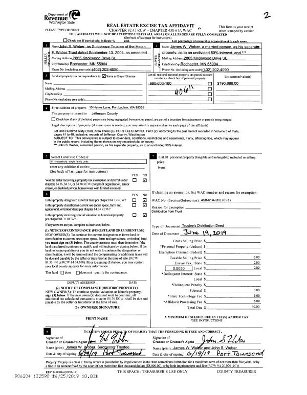 | Mailing Address: | 2666 CREST AVE PORT TOWNSEND, WA 98368-5920 | % Ownership: | 100.0000000000% |