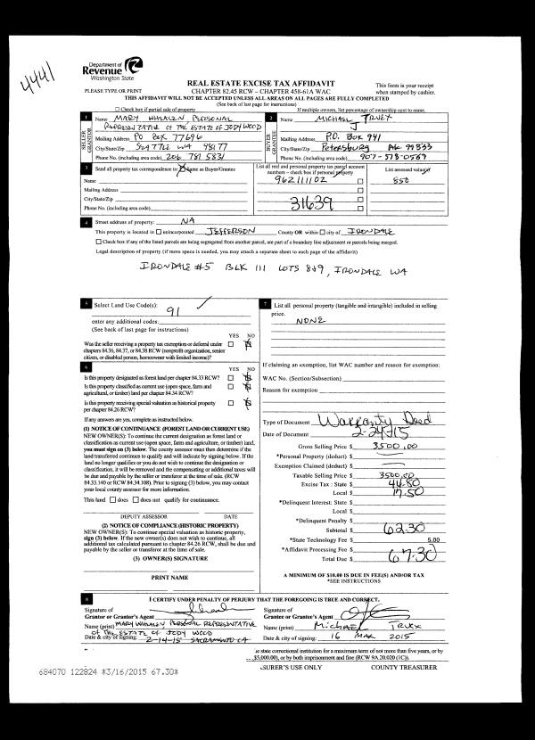 | Mailing Address: | 2206 SHASTA PL PORT TOWNSEND, WA 98368 | % Ownership: | 100.0000000000% |