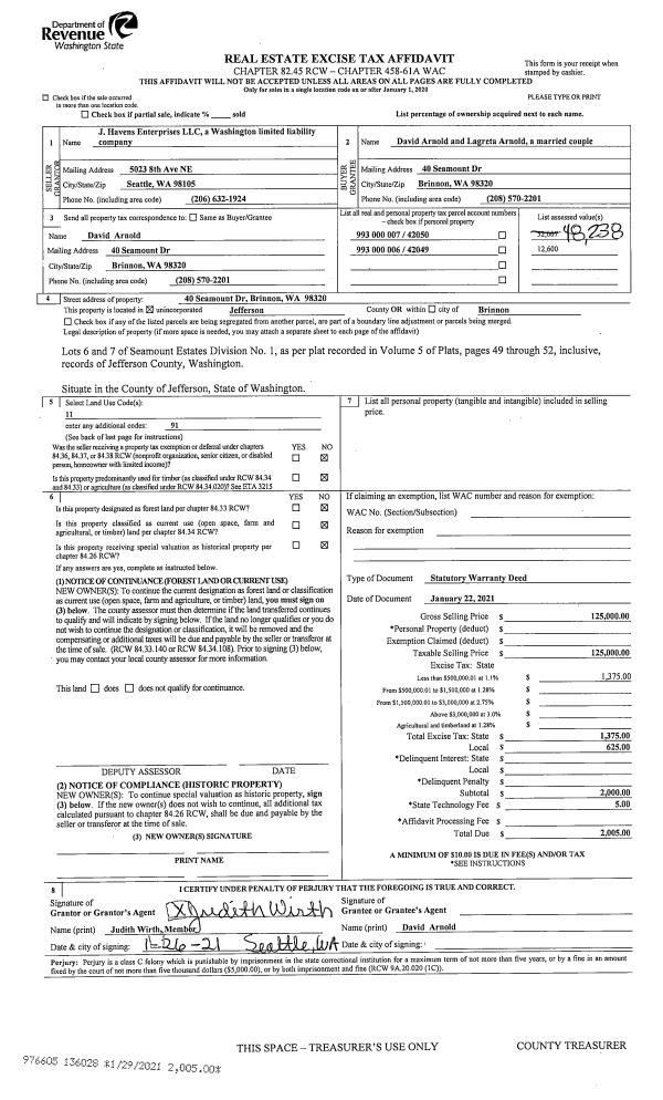 | 1 | 07/19/2013 | PRD | Personal Representatives Deed | | QUILCENE HISTORICAL MUSEUM | | | $265,000.00 | 119632 | |