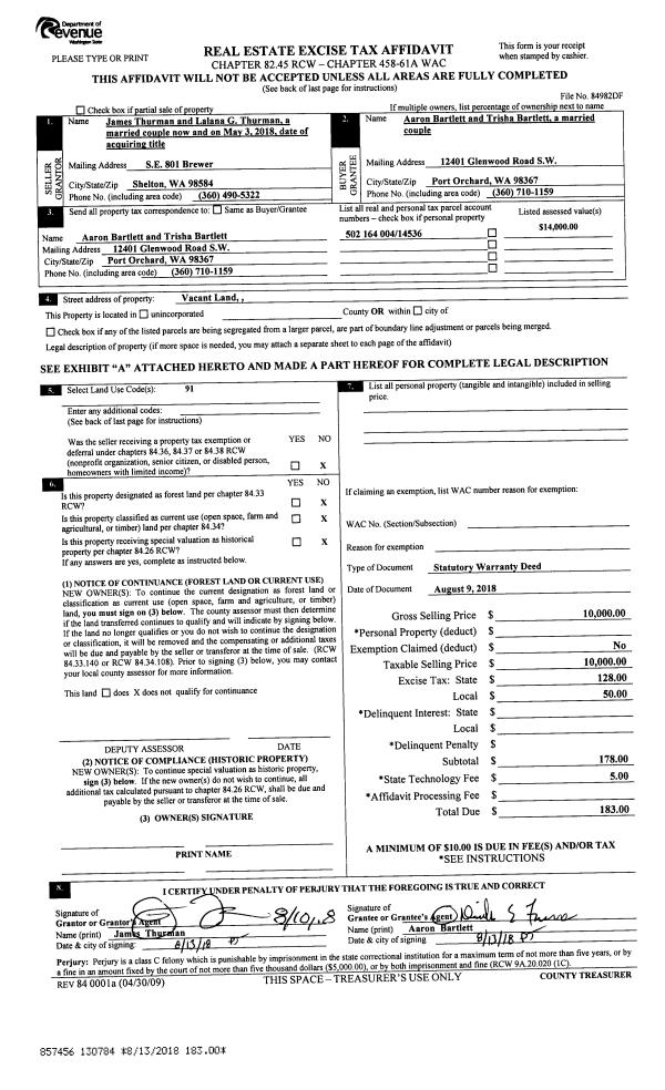 | 1 | 04/15/2019 | SWD | Statutory Warranty Deed | RYAN S NEWMAN | CHRIS & THOMAS CRUBAUGH FAMILY TRUST | | | $115,000.00 | 132152 | |