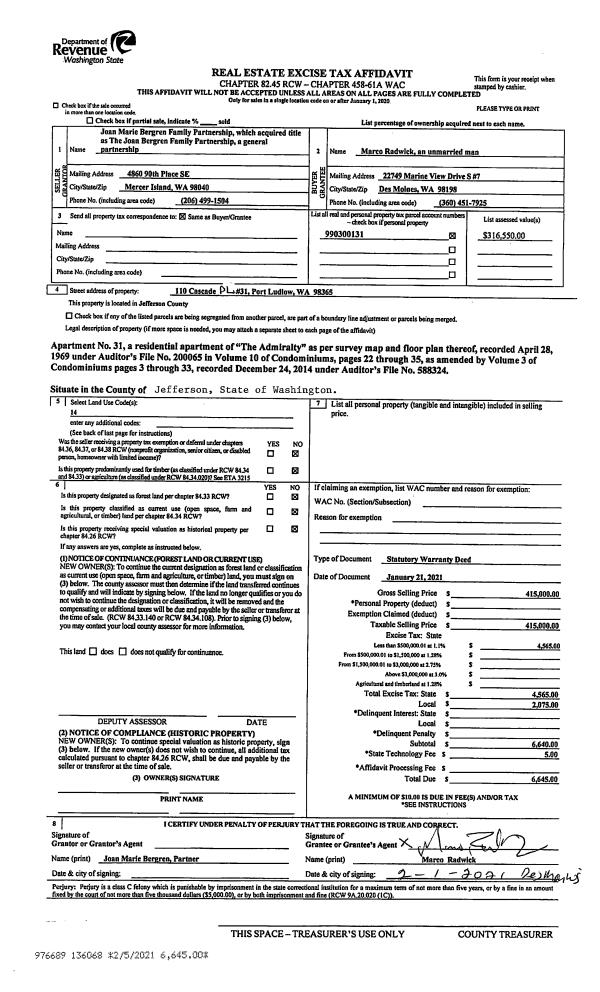 | Mailing Address: | 51 SMITH ST QUILCENE, WA 98376 | % Ownership: | 100.0000000000% |
