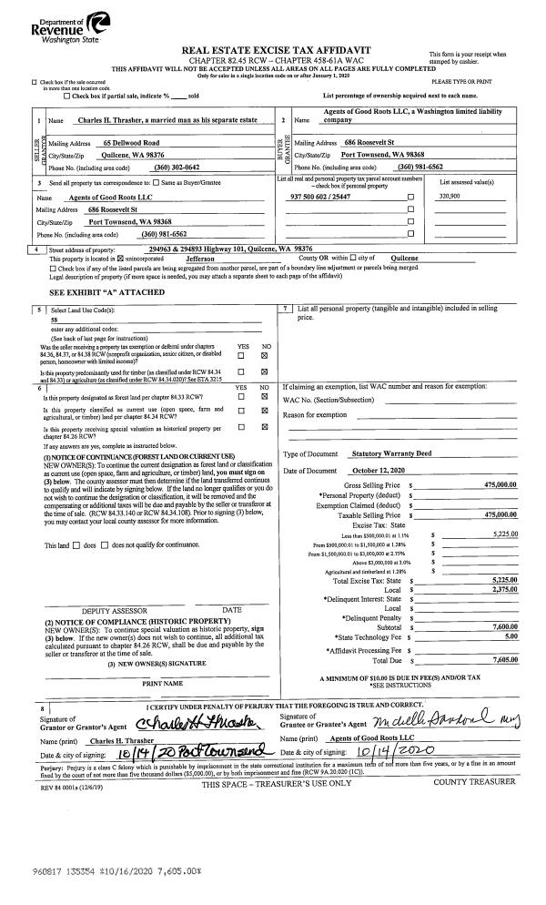| Mailing Address: | BRIAN THOMPSON PO BOX 722 QUILCENE, WA 98376-0722 | % Ownership: | 100.0000000000% |