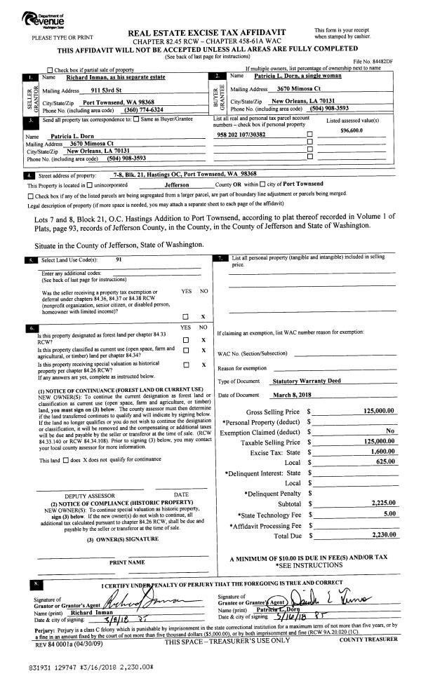 | 2 | 01/07/2019 | SWD | Statutory Warranty Deed | | | | | | 131731 | |