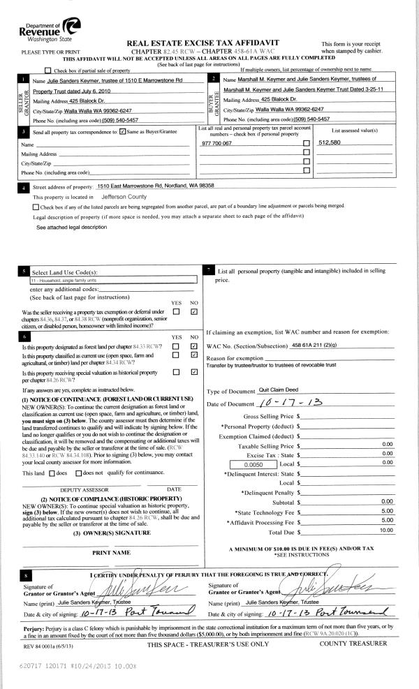 | 1 | 03/15/2016 | SWD | Statutory Warranty Deed | GERALD & PEGGY THUOTTE | GERALD & PEGGY THUOTTE LIVING TRUST | | | | 125478 | |