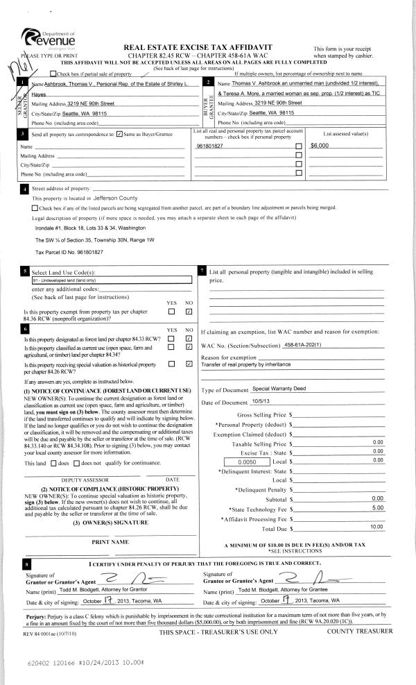 | Mailing Address: | 2307 ROSECRANS ST PORT TOWNSEND, WA 98368-6809 | % Ownership: | 100.0000000000% |