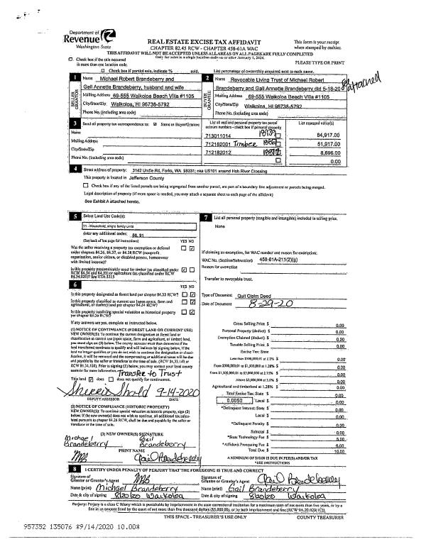 | 1 | 06/29/2016 | SWD | Statutory Warranty Deed | A & S LEE REVOCABLE LIVING TRUST | BROWNSTONE PORT TOWNSEND LLC | | | $6,200,000.00 | 125816 | |