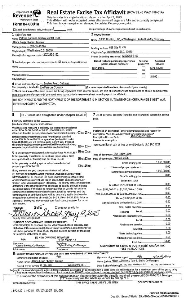 | Mailing Address: | DEREK HOLLINSWORTH-TERRAN 2705 LANDES ST PORT TOWNSEND, WA 98368-7119 | % Ownership: | 100.0000000000% |