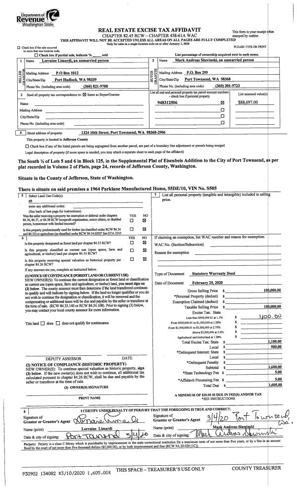 | Mailing Address: | 711 HASTINGS AVE PORT TOWNSEND, WA 98368-6105 | % Ownership: | 100.0000000000% |