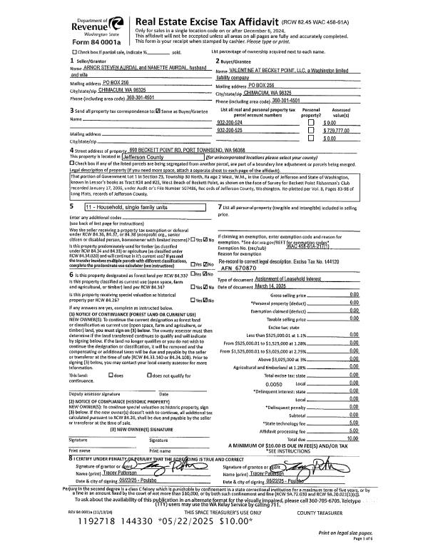 | Mailing Address: | 747 HASTINGS AVE PORT TOWNSEND, WA 98368-6105 | % Ownership: | 100.0000000000% |