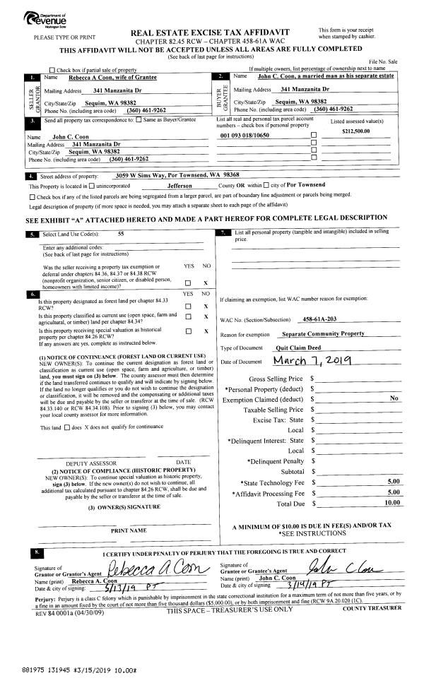 | Mailing Address: | 1113 HASTINGS AVE PORT TOWNSEND, WA 98368-8704 | % Ownership: | 100.0000000000% |