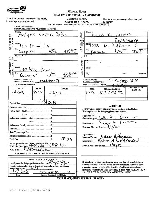 | 1 | 07/09/2018 | SWD | Statutory Warranty Deed | JOAN N WALTZ | CHAD NORRIS | | | $260,750.00 | 130583 | |