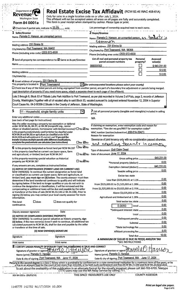 | 2 | 11/12/2024 | SWD | Statutory Warranty Deed | CATHERINE A FERGES TRUST | #954 PIONEER EXCHANGE ACCOMMODATION | | | $820,000.00 | 143517 | |