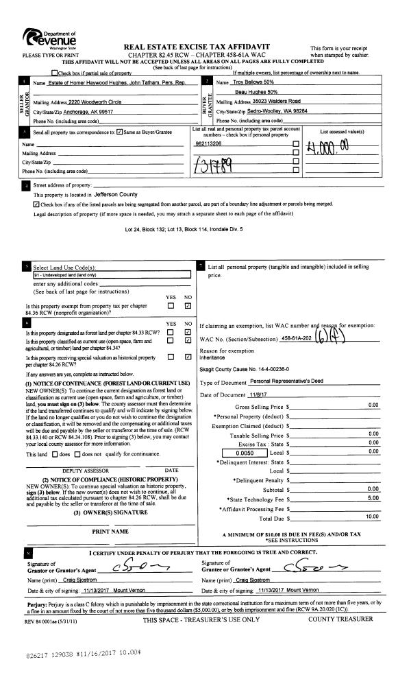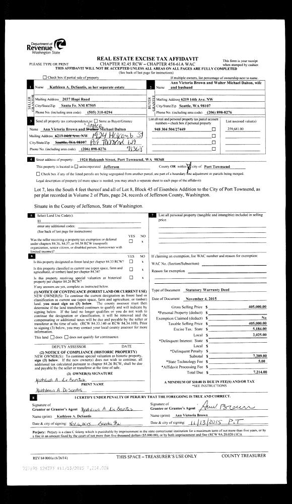 | 2 | 11/01/2016 | SWD | Statutory Warranty Deed | JOHN W WALSH | GLENN L HARRIS | | | $445,000.00 | 126581 | |