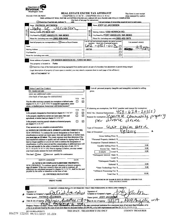 | Mailing Address: | PATRICIA A BREWER TRUSTEE 1230 29TH ST PORT TOWNSEND, WA 98368 | % Ownership: | 100.0000000000% |