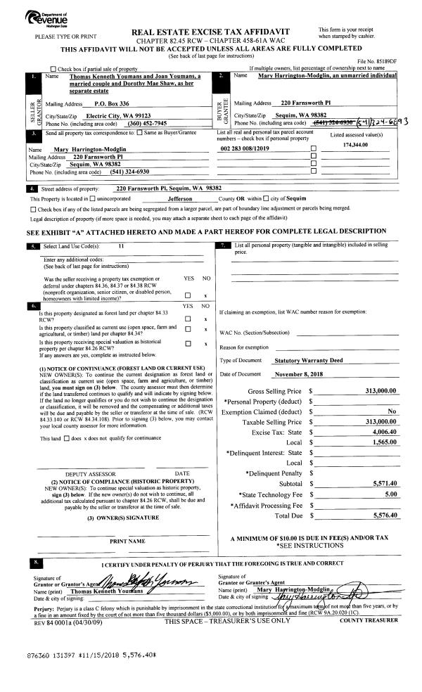 | 1 | 12/02/1996 | SWD | Statutory Warranty Deed | NORTH SOUND BANK | CHURCHLEY, STEVE/JULIE | 0 | 0 | $140,000.00 | 80896 | 0 |