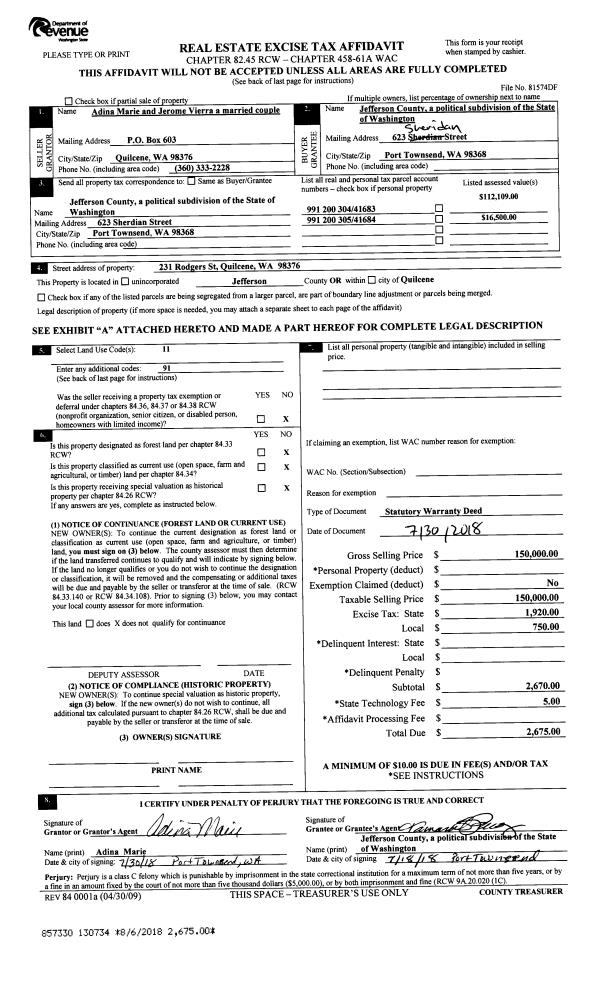 | Mailing Address: | 408 22ND ST PORT TOWNSEND, WA 98368-7806 | % Ownership: | 100.0000000000% |