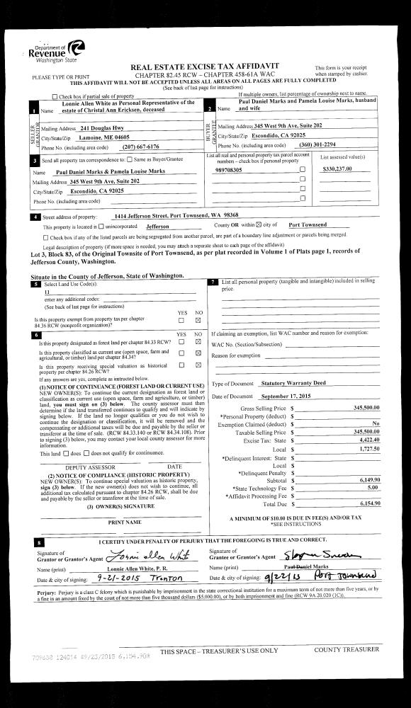 | 8 | 09/26/1994 | SWD | Statutory Warranty Deed | PROMISEL, W E/JACKSON, J | SMITH, PATRICIA A | 0 | 0 | $93,500.00 | 75358 | 0 |