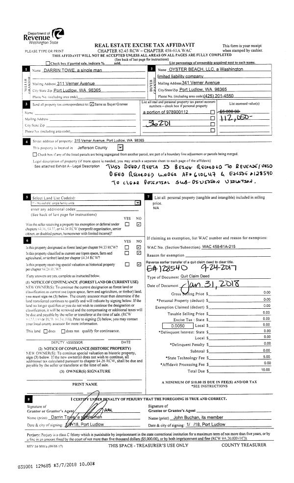 | Mailing Address: | 1141 GRIFFITH POINT RD NORDLAND, WA 98358 | % Ownership: | 100.0000000000% |
