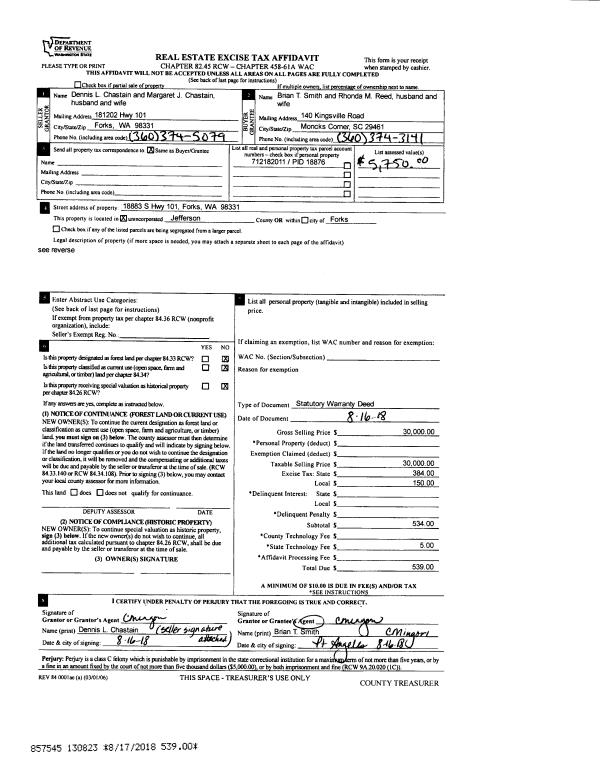| 1 | 11/22/2019 | QCD | Quit Claim Deed | GARY K SMITH | GARY KENT SMITH REVOCABLE TRUST | | | | 133544 | |