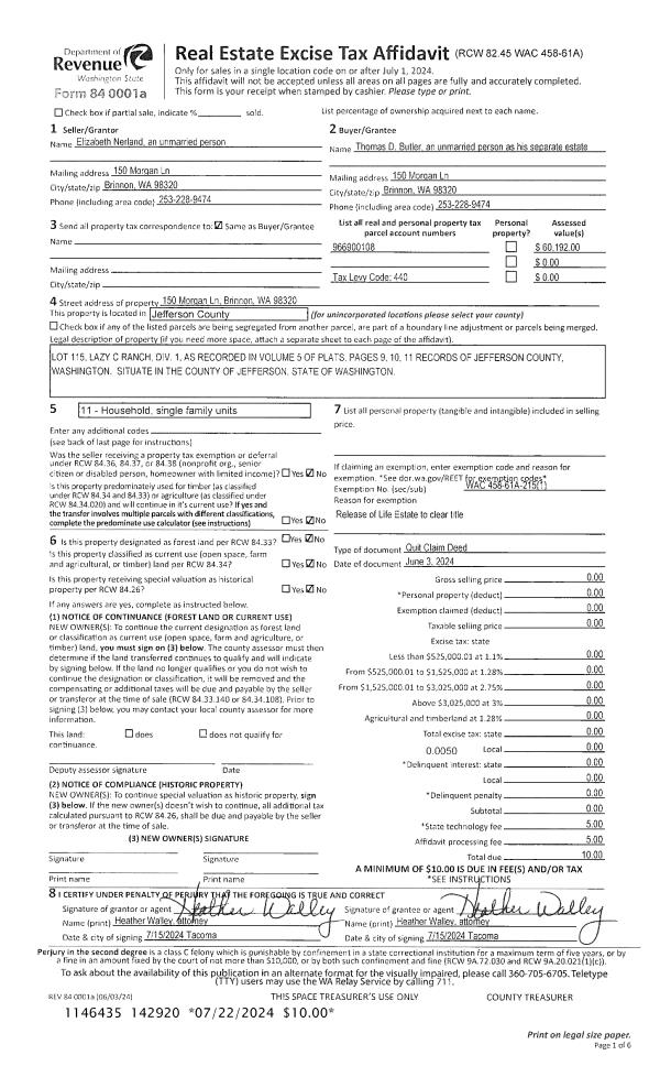 | 2 | 1575A | Terr/Mtn/No View <6 Acres | 1.6500 | 71874.00 | 0.00 | 0.00 | 0.00 | $19,058 | $0 |