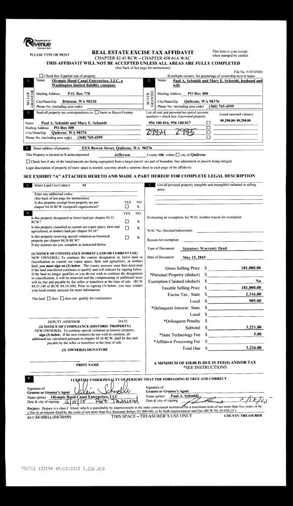 | Mailing Address: | C/O TBPM 412 LOGAN ST PORT TOWNSEND, WA 98368 | % Ownership: | 100.0000000000% |