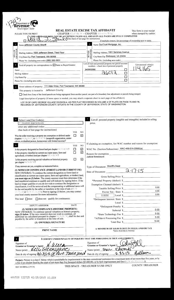 | 1 | 06/26/2015 | BSD | Bargain and Sale Deed | BANK OF AMERICA | KATHLEEN M WRIGHT | | | $105,000.00 | 123954 | |