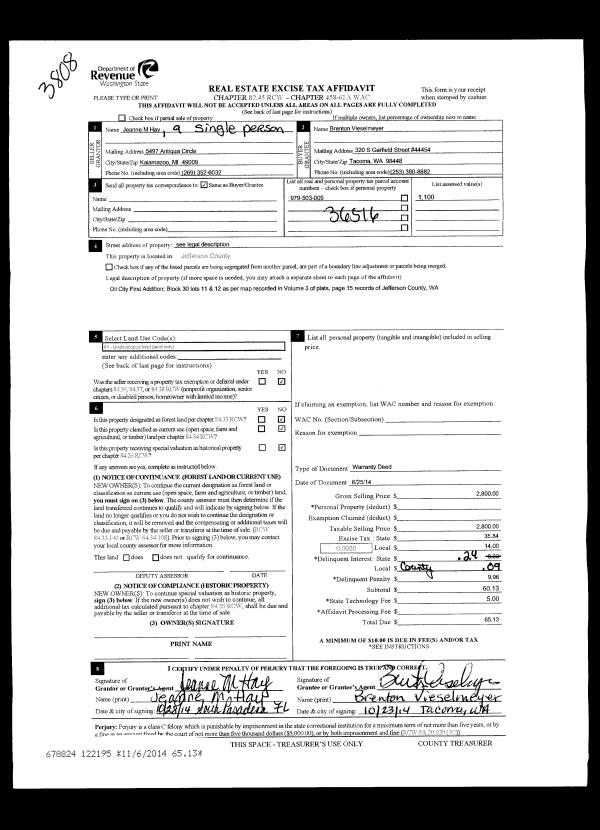 | 3 | 04/19/2005 | SWD | Statutory Warranty Deed | CULVER, RAY E | YU, DE T/DEBRA A | | | $175,000.00 | 103290 | 0 |