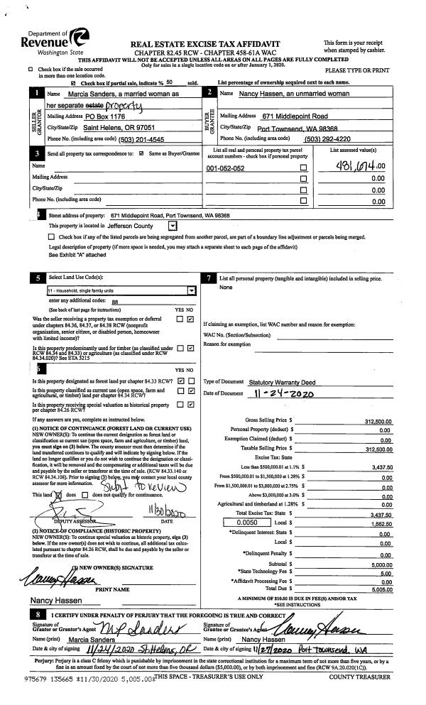 | Mailing Address: | PO BOX 1310 SILVERDALE, WA 98383-1310 | % Ownership: | 100.0000000000% |