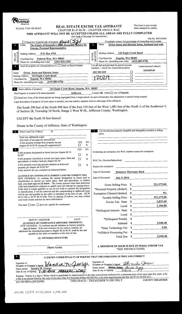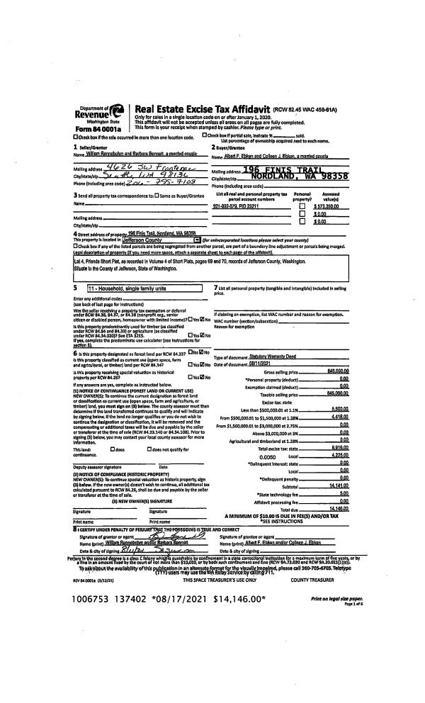 | Mailing Address: | 100 HIGHLAND GRNS UNIT 6 PORT LUDLOW, WA 98365-8200 | % Ownership: | 100.0000000000% |