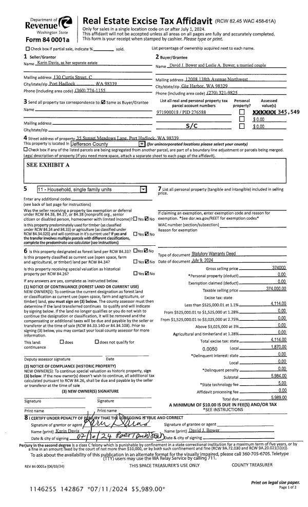 | 1 | 01/03/2025 | SWD | Statutory Warranty Deed | JEFFREY E BENEDICT | WILLEM III & TERESA BROEKHOF | | | $305,000.00 | 143736 | |