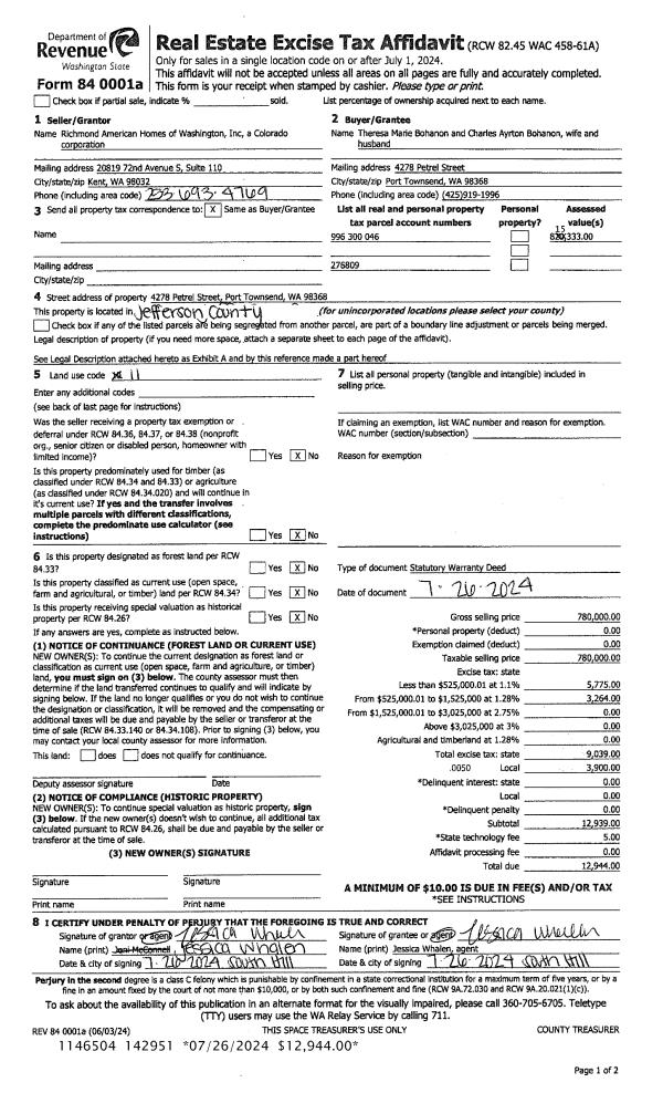 | Mailing Address: | 704 J ST PORT TOWNSEND, WA 98368-5223 | % Ownership: | 100.0000000000% |