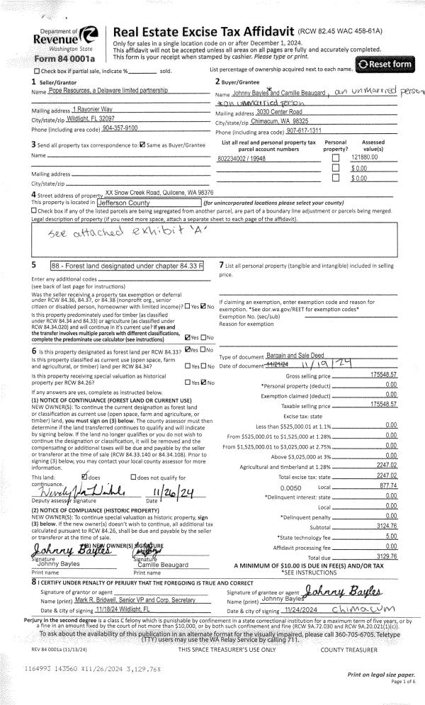 | Mailing Address: | 1240 W SIMS WAY #309 PORT TOWNSEND, WA 98368 | % Ownership: | 100.0000000000% |