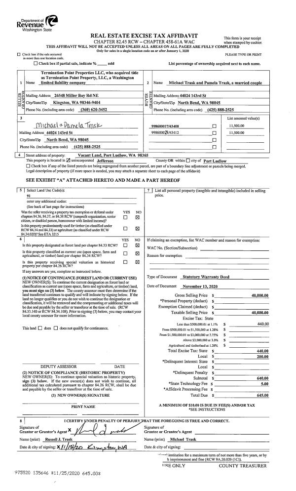 | 1 | 04/12/2021 | TRED | Trustee Deed | ELISABETH MC FARLAND TSTE | ELAINE M & THOMAS POWELL | | | | 136521 | |