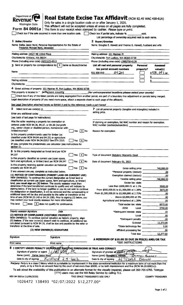 | Mailing Address: | 1210 F ST PORT TOWNSEND, WA 98368-5109 | % Ownership: | 100.0000000000% |