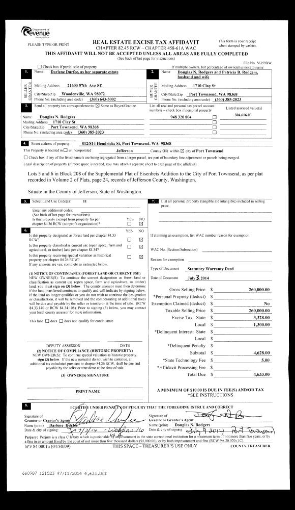 | Mailing Address: | 2404 HENDRICKS ST PORT TOWNSEND, WA 98368-7012 | % Ownership: | 100.0000000000% |