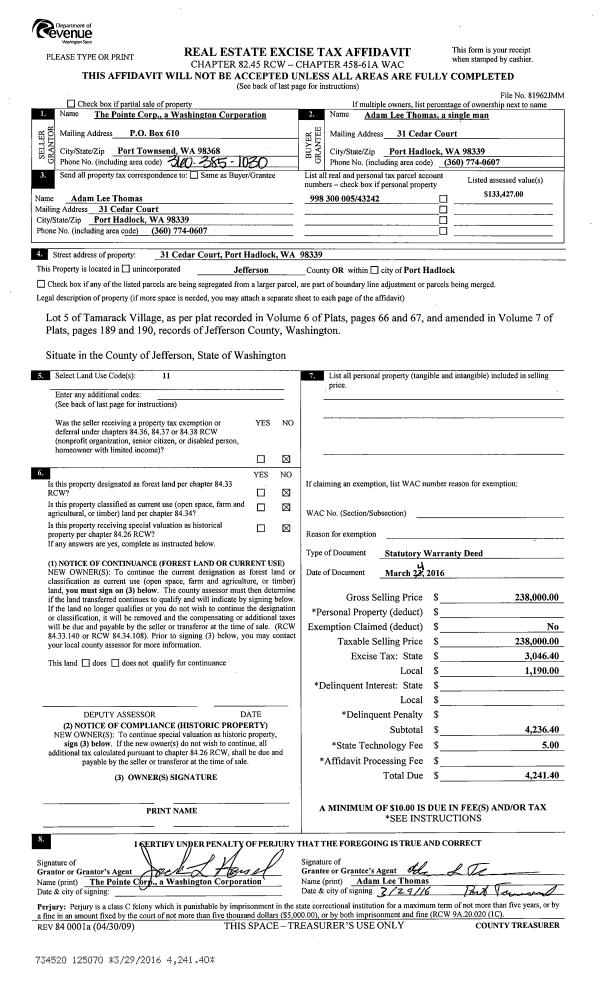 | 2 | 07/06/2009 | SWD | Statutory Warranty Deed | PLICE III, WILLIAM A/JUDI | MC NAMARA, JOEL D/DARCY | | | $395,000.00 | 113091 | 0 |