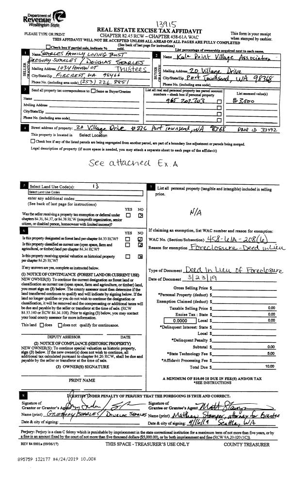 | Mailing Address: | GARY WILES TRUSTEE LANA WILES TRUSTEE 2510 GRANT PL PORT TOWNSEND, WA 98368-7100 | % Ownership: | 100.0000000000% |