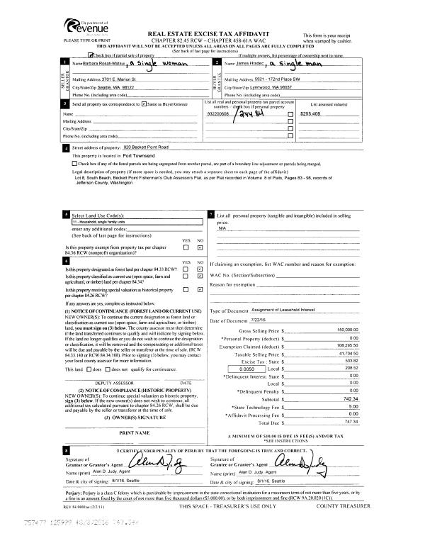 | 2 | 08/21/2019 | SWD | Statutory Warranty Deed | ASH CALDER & ROBERT HART | CRISTINA CORONADO & NICHOLAS HUFF | | | $529,000.00 | 133032 | |