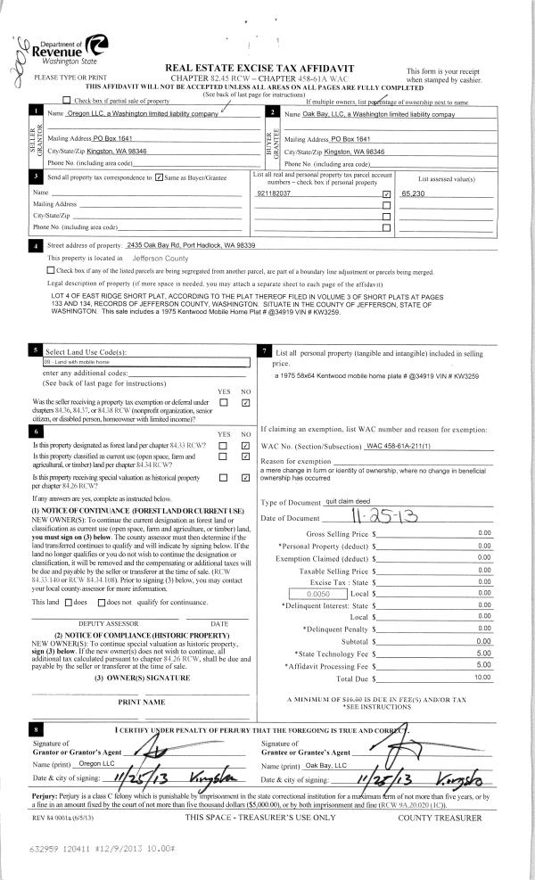 | Mailing Address: | 31 MAXWELL AVE PORT TOWNSEND, WA 98368-9487 | % Ownership: | 100.0000000000% |