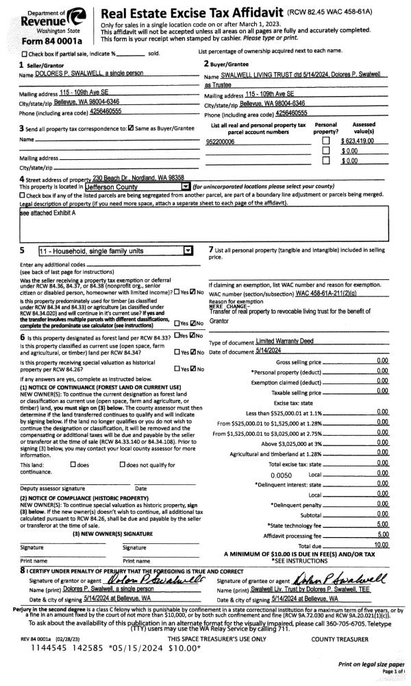 | Mailing Address: | 1924 CAPE GEORGE RD PORT TOWNSEND, WA 98368-9623 | % Ownership: | 100.0000000000% |
